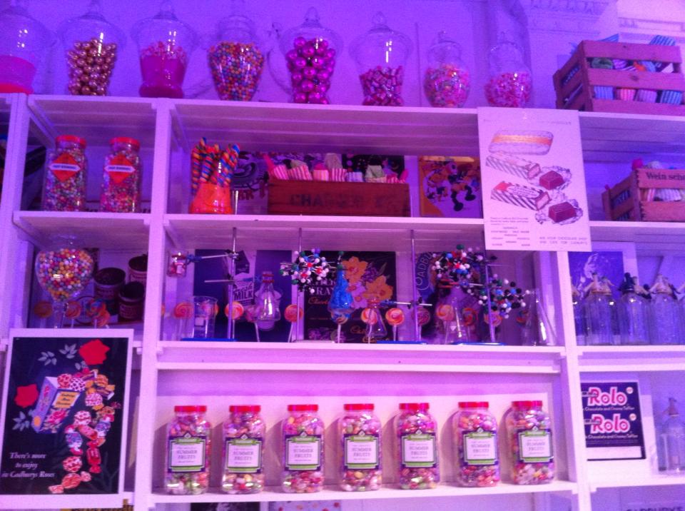 We were REALLY impressed with the decorations – there were SWEETS everywhere! Look at this display behind the bar! (The lollipops were on a conveyor belt!)