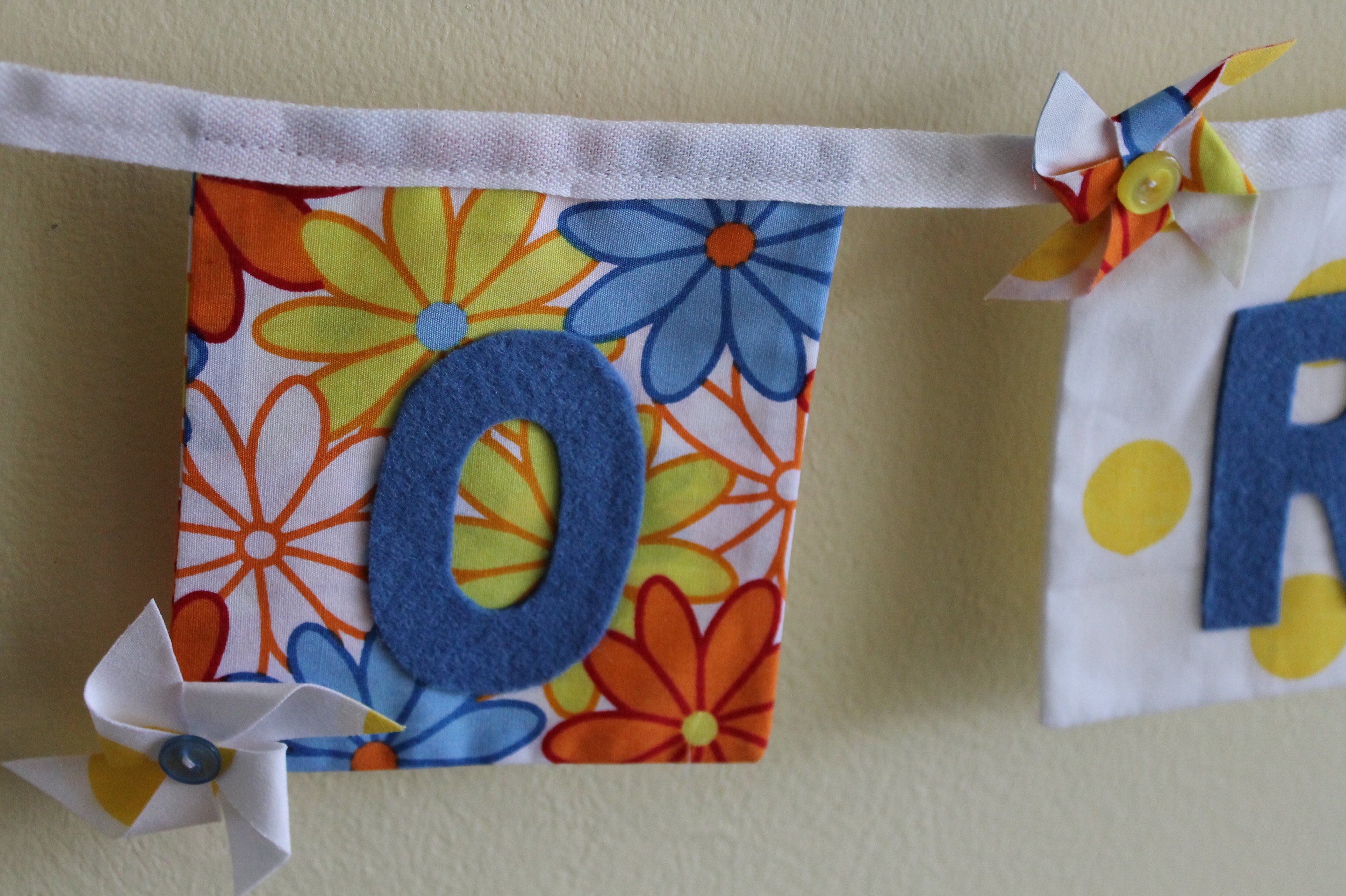 My husband’s sister and her husband had a baby in January, hurray! To celebrate, I made some…you guessed it, bunting! Below is the finished result. I had a lovely text from my sister-in-law over the weekend who is delighted with it π Welcome, baby Gregory!