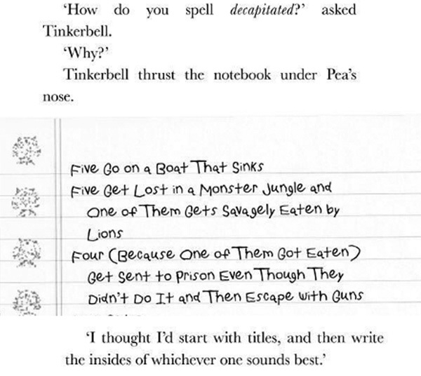 I loved Agents Ryan and Troy and their obsessions with walkie-talkies. I loved Clover and her attempts to put a brave face on her increasing unhappiness at drama camp. I loved the descriptions of Pea’s mum writing, with post-it notes promising retribution if she is disturbed during her work. I loved the Blyton-esque feel to the book, because I too was an avid fan of the Famous Five when young. And I loved the chapters towards the end, when things suddenly take a very serious turn and a light-hearted escapade becomes very dangerous indeed.