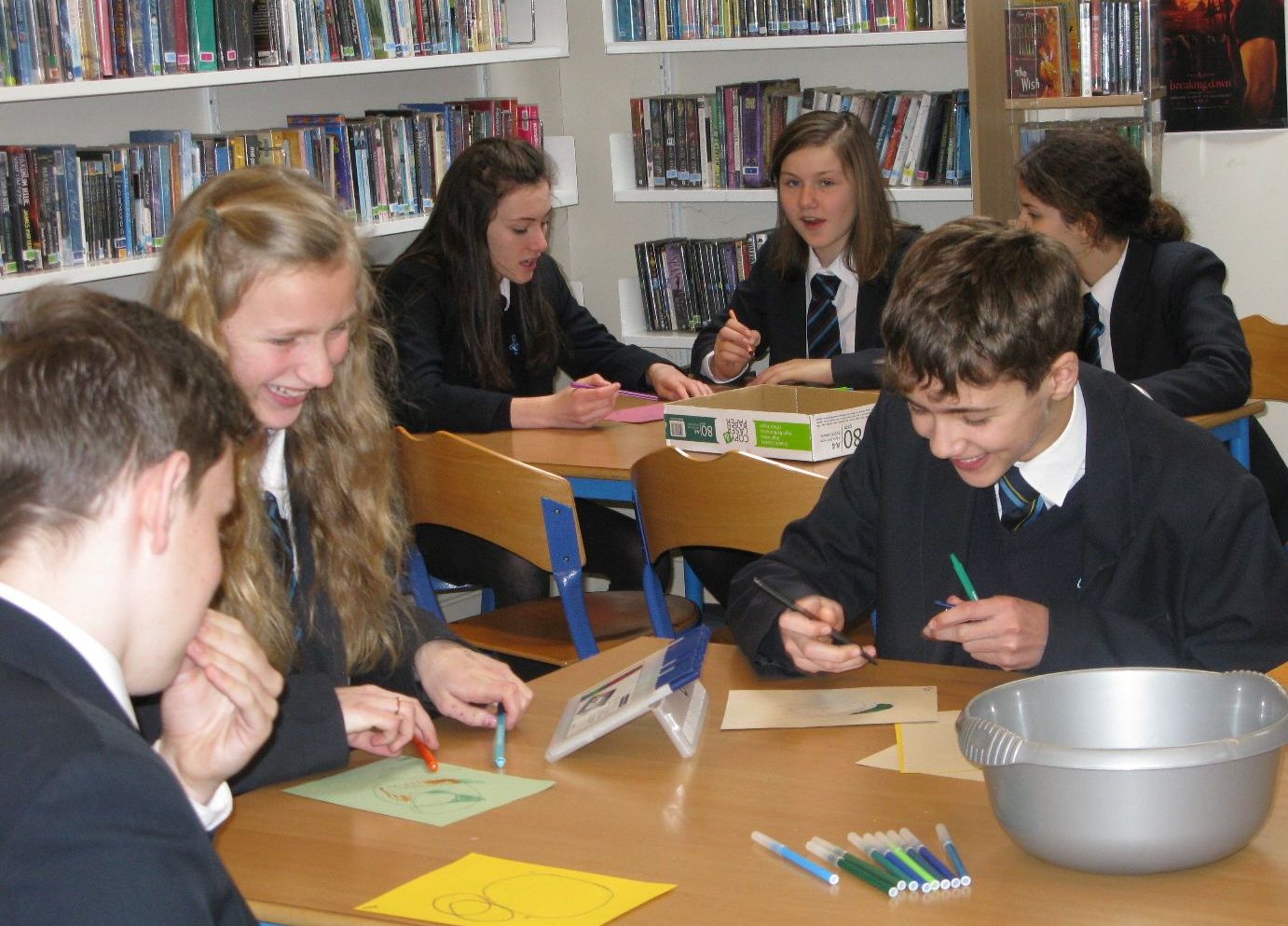 I’m all for throwing work away. The trouble with writing stuff for school is that you’re constantly aware that someone else is going to read it. Writing can be very personal, and the only way to explore your own abilities fully is to not show anyone. That way you can be as expressive or daring or vulnerable as you like. There’s only so much one can achieve in an hour’s workshop, but these students had a laugh anyway: