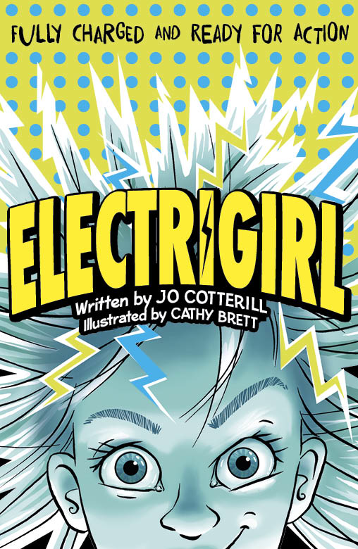 Here it is!! I am SO excited and thrilled to be able to reveal the cover for ELECTRIGIRL, out next Feb with OUP. Cathy Brett has done a fantastic drawing of Holly, our super-powered heroine, and JUST YOU WAIT till you see the insides!! I can’t believe it’s not going to be on sale for another NINE MONTHS, it’s as bad as waiting for a baby! Big thanks to Cathy, and to Holly, the designer at OUP, for coming up with something so striking and brilliant. And thanks also to Kathy W and Gill for the constant editorial support and being generally wonderful. Woop woop!
