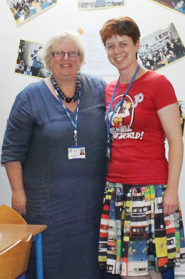 And here’s a pic of me and Lynne Cooper, the wonderful librarian, who is so supportive of me and the students. School librarians do such a fantastic job, and they’re not appreciated enough. We appreciate you!