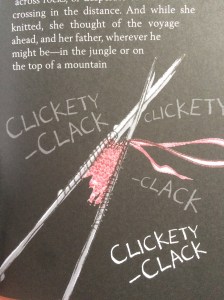 Nelly’s best (and only) friend is her turtle Columbus, who doesn’t speak. And Nelly being a practical sort of girl eventually decides that the state of affairs is intolerable and so the best thing to do is to set sail herself in search of the missing Captain Peabody. Fortunately, there is a boat available for this purpose, though Nelly is forced to knit herself some sails before it’s seaworthy. And then she writes her mother a note, promising to be back in a year, and sets off with Columbus.