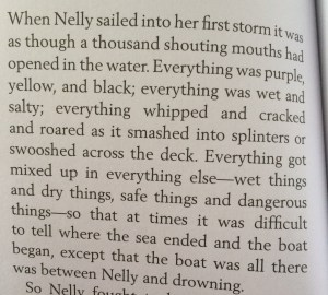 Nelly is a great character: practical, no-nonsense, and with that childlike optimism that somehow everything will turn out all right. I liked her very much – and Columbus too. She faces many perils on her journey – extremes of temperature, whirlpools, and pirates. My favourite line in the book made me laugh out loud, and won’t make any sense out of context, but to reveal why it is funny would spoil the plot: