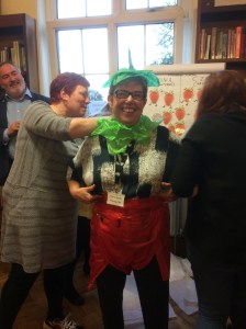I was invited to speak at the FCBG conference over the weekend – the pre-dinner slot on Saturday evening, just before the Gala Dinner with their special guest, the Children’s Laureate Chris Riddell. At first I was really stumped as to what to do in my half-hour event. The hundred or so librarians had spent the whole day listening to speakers, andΒ I was there to tell them a bit about A STORM OF STRAWBERRIES, out at the end of June. My lovely publisher Piccadilly had produced some sweet little samplers of the first two chapters of the book, so I had to at least mention it – but how to do it without boring the pants off everyone?