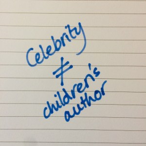 *Edited to add: a good author friend has pointed out that not all children’s authors regularly visit schools (for a variety of reasons), and that not all children’s authors write or illustrate books as their main job. This is an excellent point, and does not invalidate their standing. Publishing advances/royalties are extremely low these days, and many authors have another job because they can’t afford not to. However, those authors, almost without exception, make an effort to be part of the community – like commenting on my blog posts and putting me right! 😉 – and that is something celebrities don’t do.