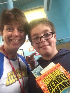 On Wednesday evening I set off again, this time to Portsmouth, for events linked to the Portsmouth Book Award supported by their SLS (oh, it makes me SO SAD that we no longer have a SLS in Oxfordshire; they all do SUCH fantastic work). I spoke to over 600 children in three events and had a wonderful time! One school had even dressed up as book characters – and I met two familiar ones…