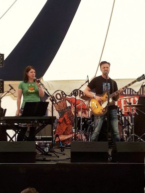 But I also did something I’ve never done before and it was SUPER exciting – I played a music festival with my band FACES FALL! Look – here we are on stage at the Wychwood Festival, in front of about 200 people!